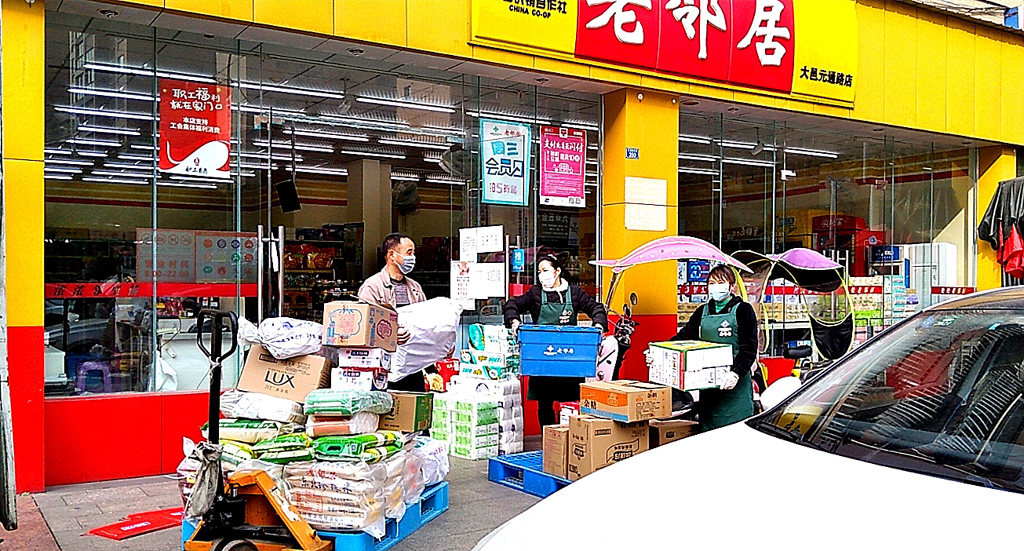 因附近出現(xiàn)疑似病例,銀木城市生活店附近各小區(qū)均實(shí)行了嚴(yán)防嚴(yán)控措施,給小區(qū)居民生活和購物帶來了諸多不便。店長了解到相關(guān)情況后迅速組織店員召開會議研究解決方案,積極與社區(qū)和小區(qū)物管中心協(xié)調(diào)溝通,將老鄰居通過微信群、QQ群、電話接單、送貨上門服務(wù)方式廣為宣傳,分店在接單后立即分工合作,記錄訂單、選備商品、電話聯(lián)絡(luò)顧客并免費(fèi)送到小區(qū)門口,大到幾袋米、小到一根蔥,分店每日送貨上門訂單量近萬元,導(dǎo)致門店工作量大增,但每當(dāng)看到顧客收貨后露出滿意微笑,她們認(rèn)為,再多付出都是值得的!