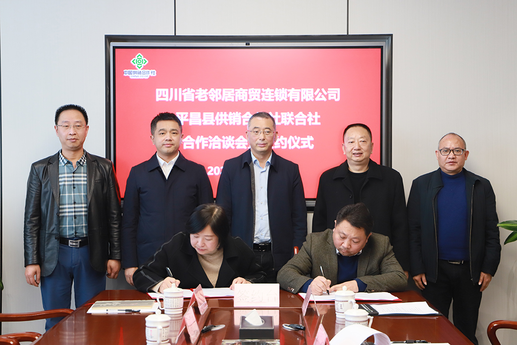 12月14日上午,省老鄰居公司與平昌縣供銷社合作共建縣域商貿(mào)流通服務(wù)體系洽談會(huì)暨業(yè)務(wù)合作簽約儀式在省老鄰居公司成